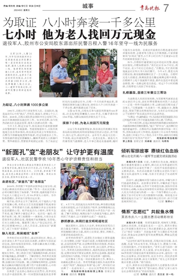 社区警务工作是一项系统繁杂的工作,事虽小,却最贴近群众生活。李欢凭借着在部队养成的勇争一流的“闯劲”,架起社区和谐“连心桥”,用实际行动诠释了一名退役军人、一名社区民警的责任和担当。 观海新闻/青岛晚报/掌上青岛 首席记者 刘卓毅 通讯员 李登程