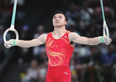 4日,在巴黎奥运会体操男子吊环决赛中,刘洋获得冠军,邹敬园获得亚军。新华社发