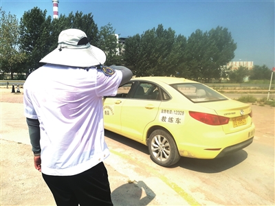 记者来到车旁,烈日下的高温,加上车辆发动机散发的热量,可以明显感觉到车辆附近的炙烤。陈杰告诉记者,一天的时间里,教练需要在这样的高温环境里站上六七个小时,尤其是面对初学者,更需要在车旁为他们引导路线和标注参照物。“我们已经习惯了,学员们可以在车内开空调。”陈杰说。
