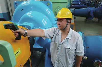 海润集团23个加压泵站是市内三区的供水“大心脏”,肩负着居民生活用水和企业生产经营的供水保障任务。进入7月份,用水量逐日增加,各加压机组设备也面临着长时间高负荷运行的考验。作为居民用水的重要环节,该集团24小时密切关注各加压泵站的来出水压力、设备电压、水质变化等情况,对发现的异常问题及时进行处置,确保水厂产出的自来水保质、保量、保压地送进管网和水池。为保证站内低压柜安全运行,在部分加压泵站设备内安装了除湿器,对设备进行降温除湿。走进加压泵房,设备轰鸣,从发动机里吹出的热风,使整个泵房如同一个“大蒸笼”。“我们第二管理所巡检中心负责辖区内10个站点的设施巡检工作。很多时候我们必须拿下耳塞,通过声音去判断设备运行是否正常。”在泵房里巡检一圈,工作人员已是汗如雨下。