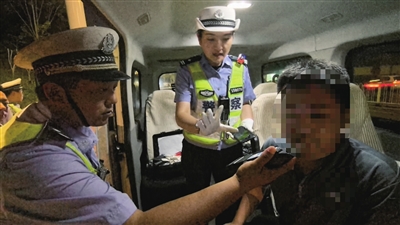 当晚,青岛西海岸新区珠江路华裕唐城门前,珠江路隧道东侧入口,青岛开发区交警三中队中队长王丽带领民警和辅警逐车检查。夏季是旅游旺季,新区作为夏季旅游热门打卡地,吸引了众多游客。珠江路作为新区东西向的主干道之一,晚上车流不断。在王丽和同事们的引导下,司机纷纷摇下车窗接受酒精初检。晚9时10分许,一辆面包车行驶到卡点前,司机走走停停,似乎有些犹豫。王丽和同事立刻上前将车拦下,司机接受初检时,初检仪的红灯反复闪烁。王丽和同事们立刻让他下车接受呼气式酒精检测,显示为71毫克/100毫升,构成酒驾。面对王丽的询问,司机承认刚才和几个朋友聚会时喝了一扎啤酒,因为觉得离家近,觉得不会有交警查车便开车回家,没想到半路被查获。