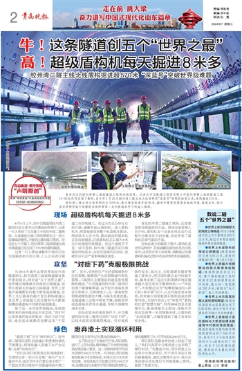 ~~~胶州湾二隧主线北线盾构掘进超570米 “深蓝号”突破世界级难题