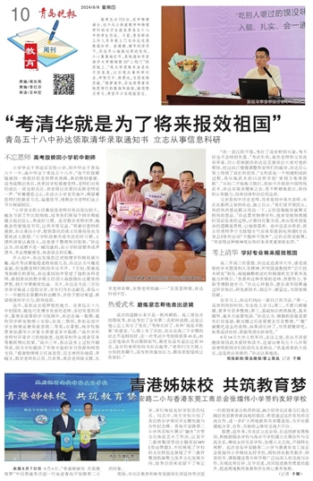 高二升高三的暑假,孙达走进清华大学,感受浓郁的学术氛围和人文精神,听刘雷波教授作“芯片技术研发”报告,被他幽默的谈吐和极强的文学素养及能力所吸引,“我喜欢这种类型的老师,我要努力,争取考博跟他学习。”孙达心怀抱负,愿在清华园里通过所学知识,研发新技术,制芯片、做雷达,为国家做贡献。