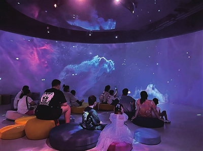 奇幻海世界二层为嗨萌奇妙游区域,这里的设计参考了《山海经》里关于海洋生物的描述,利用AIGC技术生成了16个海洋萌兽,与游人亲密互动。还设置了珊林仙踪美陈,供大家拍照、收集印章。在海洋宝匣立体沉浸影院,游客们则可以在立体眼镜、动感座椅、270°LED沉浸式碗幕的陪伴中踏上海洋历险征途。
