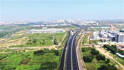 本报8月8日讯 近日,备受市民关注的融合大道一期工程有了新进展。在跨青盐铁路施工现场,随着最后一车沥青摊铺完成,标志着融合大道一期工程全线贯通,具备通车条件。