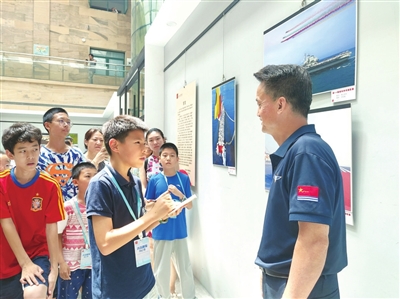听完张琰的分享后,小记者来到图书馆一楼参观八一建军节主题照片展,在海军退役老兵赵春光大校、李继武大校、王松岐大校、胡宝良大校的引领下参观摄影作品,听他们讲述照片背后的故事。一幅幅震撼人心的照片不仅是光影的交织,更是历史的见证、精神的传承。