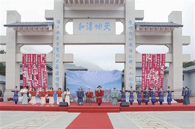 “佳偶良缘,永缔白头之约;鸾笺鸳谱,爱书红叶之盟;交换信物,谨订婚约此证。”才子佳人身着飘逸霓裳,执手缓步亮相,仿佛从古代穿越而来,儒雅内秀、美丽端庄的气质引得台下观众纷纷称赞。游客刘先生一家观看“海誓山盟”主题沉浸式实景演绎后,禁不住赞叹:“这趟崂山之旅太有意义了!”