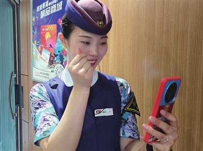 巡视车厢时,高梦雅看到许多旅客携带着鲜花、礼物,乘车去伴侣所在的城市过七夕节,心里十分羡慕。“叮铃铃”高梦雅的手机铃声响起,她打开微信,看到丈夫董几维发来了一个520元的微信红包,下面跟着一行字:“宝贝,七夕快乐,往后的每个节日我都会陪伴你。”短短几行字,让高梦雅十分感动,她打开手机录像,用双手比出大大的爱心,两人用手机传递着彼此的心意。高梦雅告诉记者,“虽然今天我们不能陪伴在彼此身边,但是有他做我的后盾,我感觉非常踏实。”