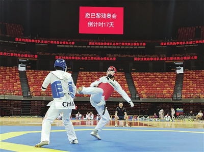 本报8月12日讯 巴黎残奥会开幕在即,11日,由市残联承训的国家残奥跆拳道队在青岛市民健身中心体育馆举行备战巴黎残奥会模拟比赛。