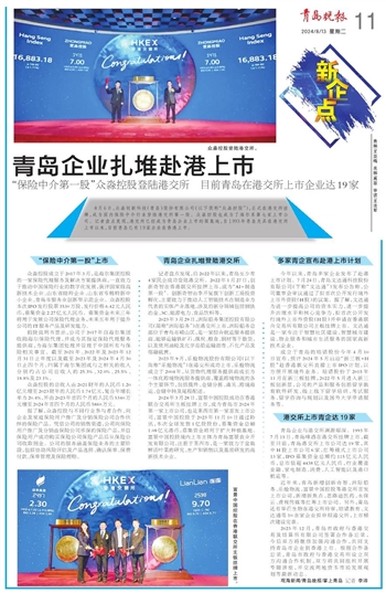 ~~~“保险中介第一股”众淼控股登陆港交所 目前青岛在港交所上市企业达19家