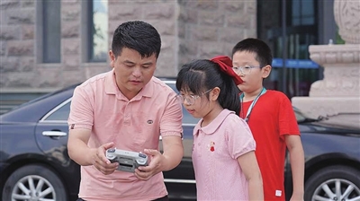 三天的体验营,让我印象最深刻的就是无人机操作飞行。无人机在我们生活中被广泛使用,它操作便捷、高效,使用场景多元。我经常会在马路、海边、公园看到它们的身影,有的是在观察路况,有的在拍摄美景,有的甚至能说话,告诉我们“关门时间就要到啦,请游客们尽快结束游览”。在新闻中还能看到特别大的无人机,能运输货物、给庄稼喷洒农药呢!当老师拿出无人机的那一刻,我的心情也像无人机一样飞了起来。拿到遥控器后,我让无人机上升、下降,左飞、右飞,感觉自己也插上了翅膀,随着它一起在天空翱翔。爸爸说,等我再大一点儿,掌控力再好一点儿,才能独立操控无人机。为了能尽快驾驶无人机,我已经迫不及待地要长大了!
