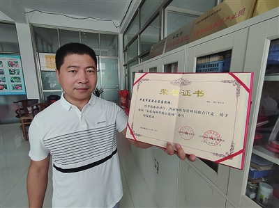 2017年,徐兆鹏被农业部科教司评为全国百名新型职业农民,并得到项目资助。作为一名新型职业农民,徐兆鹏深知热爱农业要有知识、懂技术、会经营。从积极办理合作社开始,他就以打造蜜桃地标产品为己任,参加农业类大学专业培训,不定期邀请蜜桃领域专家交流,虚心学习蜜桃种植技术,努力提升专业素养。