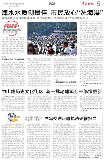 记者从国家海洋环境监测中心对外发布的周报中发现,从今年7月5日发布的第10期2024年部分沿海城市海水浴场水质周报至今,我市第一海水浴场和金沙滩海水浴场除去因强降雨无法监测外,水质结果亮眼:均为优、良等级,游泳适宜度也均为适宜和较适宜。据了解,国家海洋环境监测中心发布的周报,包括浴场名称、水温、水质状况、游泳适宜度、影响游泳适宜度原因等五项。因地处北方,我市第一海水浴场和金沙滩海水浴场的开放时间,晚于南方地区的浴场,结束时间则早于南方浴场。因此,岛城两大浴场的“体检”,从每年7月1日开始,持续至9月30日。