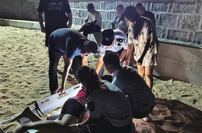 本报8月16日讯 8月15日晚11时许,青岛市公安局海岸警察支队琅琊台派出所接到求救电话,龙湾沙滩上有人摔伤。民警迅速赶到现场,询问报警人后得知,河南游客刘女士在海边游玩时,不慎摔倒导致腰部受伤,趴在沙滩上不敢动弹。民警立刻拨打120联系了急救人员,随后用担架将刘女士抬上岸送到救护车上,前往医院救治。伤者目前情况稳定。