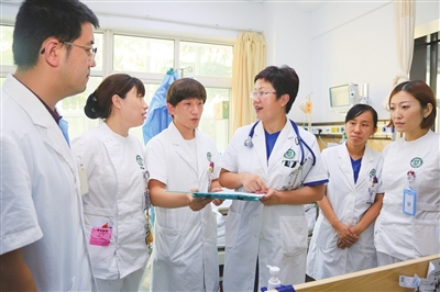 重症肺炎患者王女士在外院接受了多轮抗菌药物治疗,然而来势汹汹的疾病并没有被压制住。在本部呼吸重症监护室,刘学东团队结合患者的用药情况,怀疑导致肺部感染的元凶并非是细菌,于是决定继续“追凶”。本部检验科微生物室通过传统的培养技术和新的分子生物检测技术相结合,发现了黄曲霉菌这一真菌的踪迹,其可引起免疫功能低下患者肺部或全身性的感染,甚至死亡。得到精准诊断后,对症治疗,终于帮患者控制住了感染。刘学东常说,“从‘小’处着眼”实则有两重意义,一是细小的微生物,二是细致入微的临床观察,这也是市立“呼吸人”抢救无数疑难危重肺部感染病例的“致胜法宝”。“作为呼吸科医生,你要是对患者不上心,治疗的结果会直接反馈出来。”刘学东带队查房是出了名的严格,她对患者的尽心竭虑更是让团队成员心服口服。在刘学东还是一名年轻医生的时候,监护室住进了一位重症肺炎患者,治疗后情况好转,但仍然反复发热,调整治疗方案后收效甚微,在一一排除原因后,她自己在患者床旁长时间观察后,又结合既往的治疗记录,发现反复发热的背后其实有规律可循。“我在床旁与患者交流时,恰好赶上了特殊的药物注射治疗时间,加上患者的表述,我才知道每天这段时间是高热出现的时间段,患者反复发热其实是该治疗药物的过敏反应,这种药物不需做皮试,而该患者是特殊体质。”刘学东至今都记得,当时立刻调整替代方案,终于帮助患者体温降到了正常。