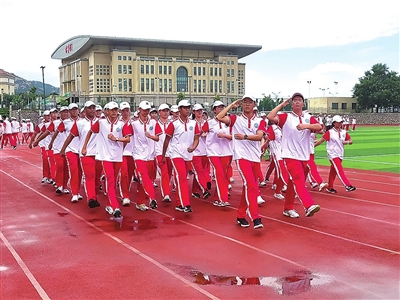 训练场上迎骄阳向前进