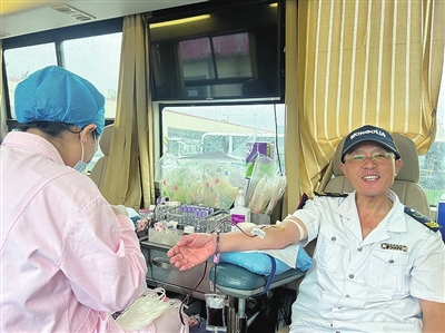 本报8月22日讯 近日,青岛市中心血站献血车开进了青岛城运控股公交集团市北巴士第五分公司,参加献血的爱心职工络绎不绝。他们中有公交驾驶员,也有车辆保洁员、车辆修理工。