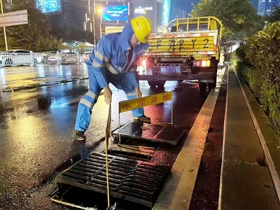 8月26日15时16分,该公司启动防汛预备响应,防汛抢险队伍开启“人等雨”模式,提前打开雨水箅子放置护栏,对道路上被树枝、树叶堵塞的雨水箅子进行清理,保障排水畅通。提前安排大流量排水泵车至易积水部位待命,保障降雨期间及时排除积水。泵站增强值班力量,提前拉低进水池水位,保证设备运行正常。16时53分,该公司启动防汛三级应急响应,防汛人员对宁夏路、香港路、东海路、山东路、黑龙江路等重点道路进行不间断巡视,对山西路济南路口、孟庄路铁路桥下等18处重点积水部位安排专人盯守,对易冒溢跑盖的检查井进行应急处置,对道路上被树枝、树叶堵塞的雨水箅子进行清理,保障排水畅通。