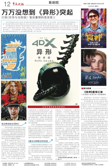 《异形:夺命舰》也凭借票房成绩超过了另外3部目前冲进今年暑期档票房榜前10名的进口影片《死侍与金刚狼》《神偷奶爸4》《头脑特工队2》,成为今年暑期档目前最卖座的进口片。作为今年以来表现最好的进口片之一。《异形:夺命舰》有望与《哥斯拉大战金刚狼2》角逐2024年度内地市场进口片票房冠军。