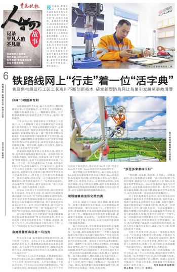 ~~~青岛供电段运行工区工长高川不断创新技术 研发新型防鸟网让鸟巢引发跳闸事故清零