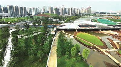 从先行启动区向两侧望去,河道南侧是李家下庄和孙家下庄安置区,将于今年年底前实现回迁;河道北侧是张家下庄和董家下庄安置区,预计今年年底主体封顶,明年回迁。张村河12个安置区将在2026年上半年全部完成回迁。张村河生态修复和环境整治提升工程将为居民提供集娱乐休闲、自然生态为一体的“家门口”城市绿色空间。