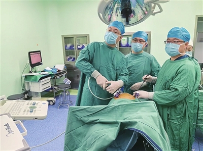 治疗团队抓住治疗窗口期,在最快的时间安排手术。术中,肝胆外二科团队迎难而上,成功为患者施行腹腔镜左半肝切除+胆总管切开胆道镜取石手术。在麻醉与围手术期医学科医护团队的默契配合下,手术非常顺利,出血不足300毫升,彻底解决了难题,为患者及家属交出了满意的答卷。