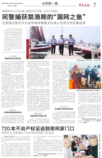 全力排除泊船港池出现的安全隐患;每天关注1000多艘船次进出港情况;连夜蹲守查出可疑小艇总在凌晨摸黑出动的原因……他们负责14.5公里长的海岸线,这里是青岛沿海旅游观光的核心地带,也是近年来青岛多场重大活动的举办地。近日,记者走进青岛市公安局海岸警察支队燕儿岛派出所,见证民警全用实际行动,在平凡的岗位上,谱写着为民服务新篇章。