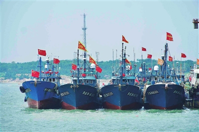当天下午,西海岸新区积米崖中心渔港一声令下,千帆争渡,出港追“鲜”。渔船齐齐向海洋深处进发,为市民带回大海的馈赠。