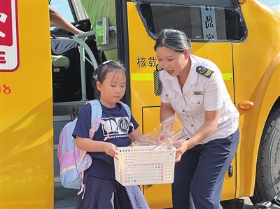 本报9月2日讯 2日一早,城运控股交运温馨校车育才分公司市北新世纪学校4号线校车车厢里,印有卡通图案的思政主题知识贴士吸引了孩子们的眼球。开学首日,温馨校车在全市各条线路上为中小学生提供精心服务。