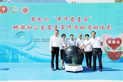 本报9月4日讯 在第九个“中华慈善日”来临之际,9月4日,青岛市第九个“中华慈善日”地铁和公交慈善宣传活动启动仪式在交运汽车东站广场举行。青岛市慈善总会会长王伟、副会长吴淑玲、郄晋生,青岛市民政局党组书记、局长江联军,青岛城运控股集团党委委员、工会主席温冰,青岛地铁集团党委委员、副总经理李成等领导出席活动,共同为地铁和公交慈善宣传按下“启动键”。