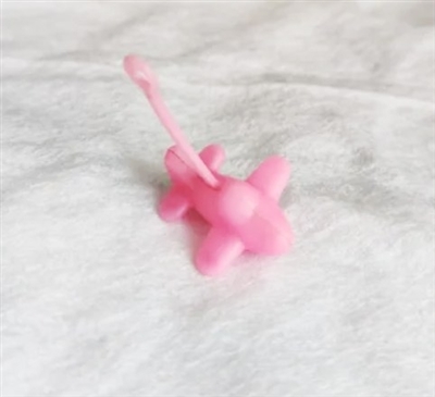 此次事件中的“罪魁祸首”——粉红色带杆的玩具飞机,其机身上方附着一根长约3厘米左右的连接杆,飞机长杆向下,翅膀卡在患儿口中,嵌顿于舌根处,紧邻声门这一人体的重要“生命通道”。医生强调,若飞机完全覆盖声门,将直接导致呼吸道入口阻塞,引发严重的呼吸困难甚至窒息,出现生命危险。