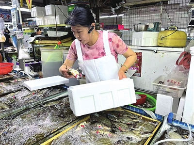 随着中秋佳节的临近,螃蟹占据各大农贸市场海鲜区域的“C位”,价格随着市场需求量的增加水涨船高,目前市场售价从每斤75元到180元不等,一些海鲜摊位每天卖出数百斤螃蟹。青岛市场上的螃蟹不光面向本地消费者,还通过快递发往全国各地。