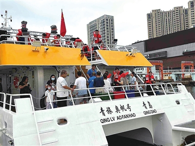 75岁的市民马女士头发已经花白,特地和老伴一起到轮渡来看看:“以前我们坐过青黄快船,今天看到这么多人这么热闹,真是太好了,别看是在后海,这样转一圈风景真的挺好,尤其是在夕阳西下时。”90后市民刘先生说,自己研究生就读于中国石油大学(华东),当年经常坐着轮渡去学校,轮渡环游航线的开通,又让自己回想起青春里最好的时光。伴随着他们的讲述,海与城的温情又在无声中绵长延展。