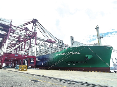 “长年”号,是应用绿色环保技术建造的最新型船舶,配合码头岸电等多重举措。和“长年”号一样,节能环保也是“达飞拉古纳”号的特点之一。这艘货轮采用全球新一代智能控制废气再循环(iCER)系统的双燃料主机,可通过特定算法自动跟踪并动态调整空气和燃气的比例,和以往机型相比,气体模式下的甲烷逃逸可降低50%,可减少28%以上温室气体排放。