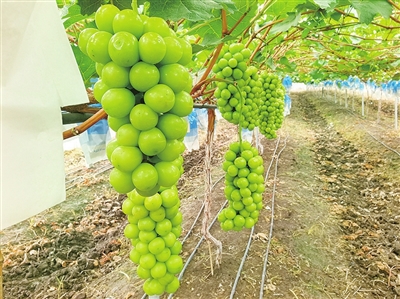 9月20日上午,记者来到大信街道草场村探访。在顺联小学北侧约150米的伟禾煜牧家庭农场内,40多亩田地里建起了16个大棚种植阳光玫瑰葡萄。经营者张伟告诉记者,9月28日,农场将正式对外开放,欢迎市民前来采摘。