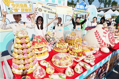 王哥庄亮出花样大馒头庆祝丰收节。邢志峰 摄
