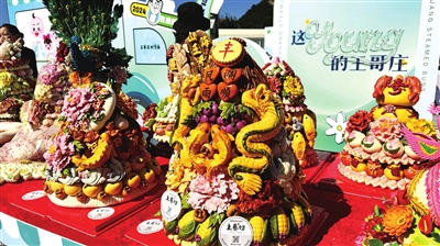 年过六旬的刘竹莲告诉记者,她是“王哥庄大馒头”品牌创始人,从20年前制作大馒头开始,就有了“馒头西施”的称号。她制作的大馒头色香味俱全,她的特制大铁锅专门用来制作60余斤重的大馒头。2011年,刘竹莲为庆祝儿子新婚,制作了68斤重的“龙凤呈祥”大馒头,惊艳了现场来宾。平时,每有重要节庆活动,或者谁家有喜事,也会请刘竹莲制作60余斤重的花样大馒头。22日,刘竹莲根据最近做的60斤大馒头实物,复刻逼真的面塑带到活动现场,引得观众连连赞叹、竞相围观拍照。
