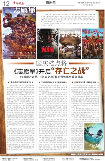 9月24日,国庆档10部新片开放预售,《浴火之路》暂列预售票房首日冠军,《749局》则是观众“想看”第一。