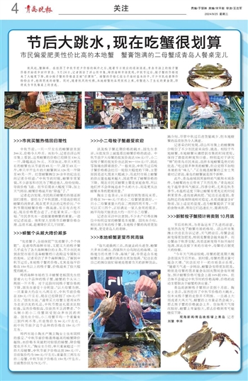 ~~~市民偏爱肥美性价比高的本地蟹 蟹膏饱满的二母蟹成青岛人餐桌宠儿