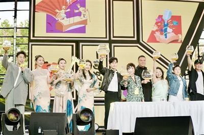 颁奖环节分为嘉年华奖、厂牌奖和组委会大奖三大板块,各奖项逐一揭晓。众多优秀的喜剧类型作品、演员和厂牌团队都获得了“形态各异”的“抽象”表彰。一个个“离谱但又合理”的奖项,让台上的颁奖主持人杜海涛、徐艺真和观众忍俊不禁。最后,随着闭幕式“干杯”仪式的进行,现场烟火绚烂绽放,硕大的啤酒杯被嘉宾们共同举起,联合发起人黄渤也通过视频向喜剧节送上祝福:“快乐就是这样,永远都有明天,永远不会落幕。”