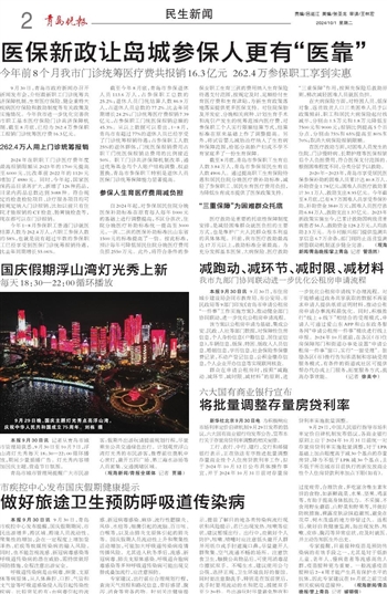 9月30日,青岛市政府新闻办召开新闻发布会,介绍最新职工门诊统筹共济保障机制、生育医疗保险、健全重特大疾病医疗保险和救助制度等有关政策及实施情况。今年我市进一步优化完善我市职工基本医疗保险门诊共济保障机制,截至8月底,已经为262.4万参保职工报销门诊统筹医疗费16.3亿元。