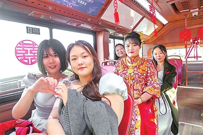 本报10月7日讯 国庆假期,岛城一对新人以独特方式,为幸福旅程增添了一抹难忘色彩:他们租用公交车当婚车,既低碳环保又仪式感拉满,运行过程中引来诸多市民称赞。