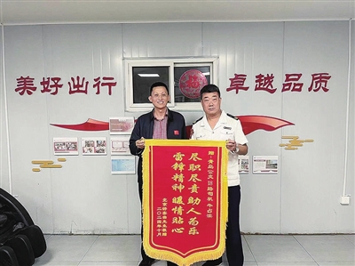 国庆假期,北京来青旅游的曲先生乘坐18路公交车出行,下车时不慎将随身钱包遗失在车辆后排座位夹缝中,里面有现金、银行卡、身份证及献血证等物品。发现遗失后,曲先生立即拨打12345求助。另一边,结束运行返回场站清扫车辆卫生时,18路驾驶员牛占滨在座位夹缝中发现一个黑色钱包,立即交给了当班调度员。“清点物品时发现是外地游客,证件遗失补办可能会造成麻烦,于是通过献血证上面预留的手机号联系到了失主。”接到电话的曲先生激动地向驾驶员表示感谢,并立即打车赶到公交市北六分公司领回了钱包。8日上午,曲先生再次赶来,将定制的锦旗送到牛占滨手中并表示感谢。