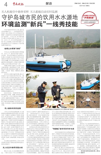 张伟告诉记者,崂山区把饮用水水源地执法列入年度生态环境执法计划,实现水源地执法检查全覆盖。崂山区城市级、“千吨万人”级饮用水源地共有7处,除了崂山水库,还有晓望、泉心河等。在传统人工采样过程中,环保工作人员经常会遇到因现场危险而无法到达采样点等情况,导致难以采集到具有代表性的地表水样品问题,尤其是今年降雨较多,各个水源地蓄水都比较充足,采样范围更广。张伟表示,有了无人船和无人机等高科技助力,它们不但能替代传统人工采样,还能深入污染禁区,迅速采集污染水样,带回一手数据,确定污染范围及程度,大幅提升样品的代表性和准确性。遇到下雨天等极端天气,或者水域复杂的地理位置,它们还可以根据设定好的轨迹,绘制出水中污染物的分布图,同时进行暗管探测。尤其在突发环境事件处置时,也能凭借其小巧轻便、操作简易、快速反应的特点大显身手,在生态环境监测人员难以到达的地方发挥独特作用,降低人员直接接触有毒有害物质的风险。与传统人工监测相比,它们的工作效率也会极大提高。