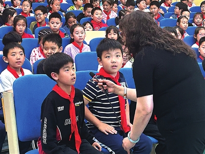 “如果你的同学向你倾诉他感到不快乐时,你会怎么做呢?”“我会询问他不开心的原因,并把我喜欢的东西与他分享,希望能缓解他的情绪。” 通过与现场学生的交流,牟宗珂引出爱与伙伴关系的互动,她强调了倾听、共情、分享和支持在爱与伙伴关系中的重要性,还提醒学生们在面对情绪问题时寻求专业帮助的必要性。