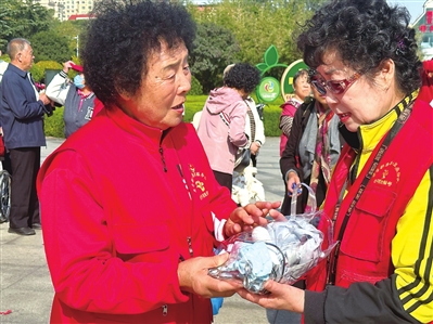 记者在现场注意到,便民服务大集活动备受瞩目,吸引了大量居民参与。晚报新闻人物、被评为“山东好人”、“青岛市文明市民”等荣誉称号的李村街道居民鲍秀兰正带领工作室队员开展便民服务。