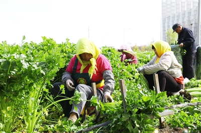 记者走进马家沟芹菜基地看到,数十人手持镰刀,穿梭在芹菜丛中,砍收、剪根、打捆、装箱……忙碌的身影在翠绿的芹菜丛中绘就了一幅动人的丰收画卷。“今年的芹菜长势非常好,尤其是8月底移栽以来,雨水偏少,所以芹菜的品质格外好,口感更加甜、脆。”马家沟芹菜基地的种植户刘晓英说。