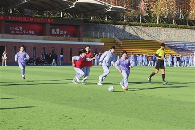 本报11月20日讯 11月16日,备受瞩目的2024年山东省青少年校园足球联赛(挑战组)在山东潍坊鲁能泰山足球学校闭幕。本次联赛汇聚了全省高中组别的男女精英,共有来自各地市的28支队伍在绿茵场上展开激烈角逐。青岛九中礼贤女足在一周的精彩对决中,展现出了非凡的勇气和坚韧,最终荣膺高中组冠军。至此,青岛九中足球队成为2024年岛城唯一“双料省冠军”。