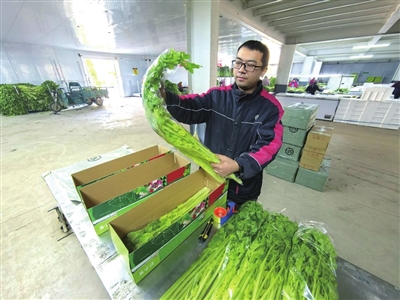 本报11月25日讯 今年,马家沟芹菜不仅坐上了“高铁急送”,还能搭乘“直飞航班”,从平度出发,8小时内抵达威海,最快48小时送达新加坡。