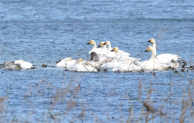 28日,莱西湖迎来了60多只白天鹅,它们在湖面上悠然游弋,洁白的羽毛在阳光下熠熠生辉,构成了一幅动人的自然画卷。莱西湖湖水充盈,水草茂密,浅水湾适宜,为白天鹅、白琵鹭、白头鹤等多种候鸟提供了理想的栖息环境。每年冬季,莱西湖都会迎来数十万只候鸟,成为名副其实的“候鸟天堂”。